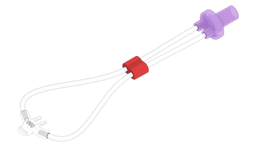 The NeoFlow® nasal cannula prongs include a positioning tab for easy alignment in the nares. They are compatible with the NeoFlow® bonnet, optionally reducing the need for fixation to the skin.